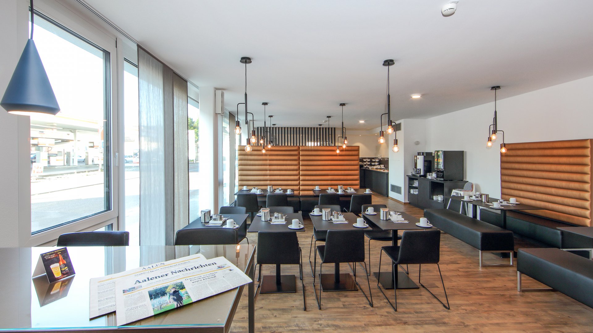 Auf unserem Frühstücksbuffet finden Sie alles, was zu einem reichhaltigen und leckeren Frühstück gehört: ofenfrische Brötchen, Croissants und eine große Brotauswahl. Natürlich gibt es ein gesundes Frühstücksmüsli mit frischem Obst und verschiedenen Joghurt- und Quarksorten. Das Frühstücksei bereiten wir nach Ihren Wünschen zu. Rührei, Nürnberger- oder Weißwürste stehen für alle bereit, die es am Morgen schon herzhaft mögen. Vielleicht lassen Sie sich auch vom Duft unserer Pancakes und Waffeln verführen oder wählen aus den Gebäck- und Kuchensorten ihren Favoriten. Gerne gehen wir auf Ihre Wünsche bei veganer, vegetarischer und laktosefreier Ernährung ein. Sprechen Sie uns einfach an. Dazu frisch aufgebrühter Kaffee, Tee und Ihr Tag mit Bed and Breakfast in Aalen kann beginnen.